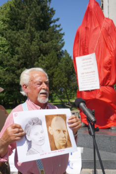 - Dieter Dombrowski, Vorsitzender der UOKG, bei der Verhüllung