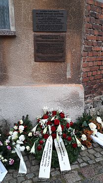 Dank der Unterstützung durch Herrn Popratz, Mitarbeiter bei der LAkD, und Frau Gerlant konnte nach fast anderthalb Jahren die ergänzende Gedenktafel für Pfarrer Gnettner am alten Pfarrhaus am Volkstrauertag, dem 19. November 2017 enthüllt werden.