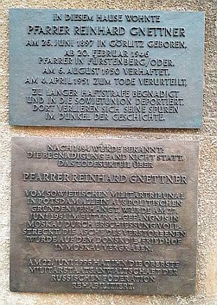 Es fing alles an mit einer schönen Radtour mit meiner Ehefrau durch das Schlaubetal. Nach dem Workutaner-Treffen, das vom 3.-5. Juni 2016 in Schwerin stattfand und bei dem die Workutaner im Stadtteil Großer Dreesch gegen das noch immer dort stehende Lenin-Denkmal demonstrierten, wollten wir uns ein wenig ablenken und erholen in der schönen brandenburgischen Natur unweit Berlins. Die Radtour beendeten wir mit einer Übernachtung in Fürstenberg, dem schönen an der Oder gelegenen Ortsteil von Eisenhüttenstadt. Mächtig thront dort die Nicolaikirche über dem malerischen Ortskern. Am alten Pfarrhaus entdeckten wir eine Gedenktafel für den Pfarrer Reinhard Gnettner: "Am 26. Juni 1897 in Görlitz geboren. Ab 20. Februar 1946 Pfarrer in Fürstenberg/Oder. Am 6. August 1950 verhaftet. Am 4. April 1951 zum Tode verurteilt. Zu langer Haftstrafe begnadigt und in die Sowjetunion deportiert. Dort verlieren sich seine Spuren im Dunkel der Geschichte."