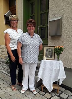 - Tanja Hartmann (l.) und Hannelore Schwanz bei der Gedenkfeier für ihren Großvater und Vater. Die Würdigung, so die beiden, empfinden sie als tröstlich. Foto: Stefan Krikowski.