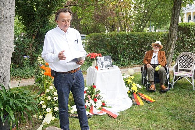 Helmut Sonnenschein las den Namen seines Vaters Helmut Sonnenschein, geboren am 28. Mai 1906 in Leipzig. Er wurde am 26. April 1951 in Berlin-Lichtenberg zum Tode durch Erschießen verurteilt und am 4. Juli 1951 in Moskau erschossen. Am 17. Juli dieses Jahres wurde eine Gedenktafel „Letzte Adresse“ zu seinem Gedenken an seiner letzten Wohnadresse in Naumburg angebracht.