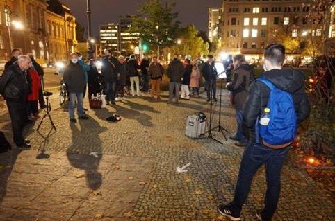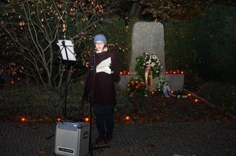 Es war ein würdevoller Abend am Steinplatz in Berlin mit ca. 50 Teilnehmern. In einem Nachgespräch mit Frau Dr. Anke Giesen und Frau Christina Riek (beide Mitglied im Vorstand von MEMORIAL Deutschland) meinten sie, dass im nächsten Jahr dieser Gedenktag wieder am Steinplatz fortgeführt wird.