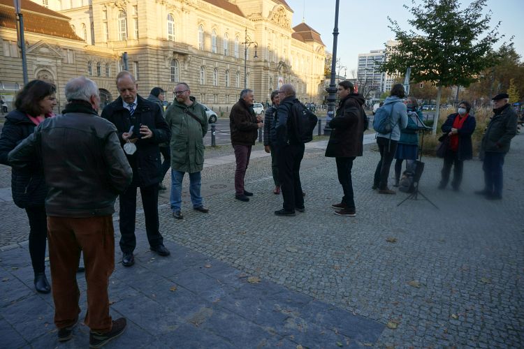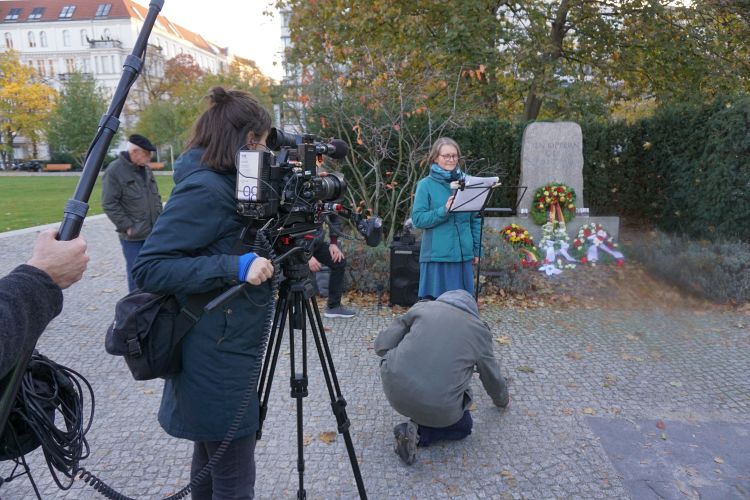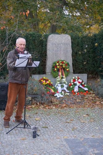 Bei schönstem Herbstwetter nahmen etwa 50 Teilnehmer an dieser Gedenkveranstaltung in Berlin-Charlottenburg am Steinplatz teil. Die Veranstaltung wurde von MEMORIAL organisiert mit ihren vielen Freunden und Sympathisanten aus Russland.