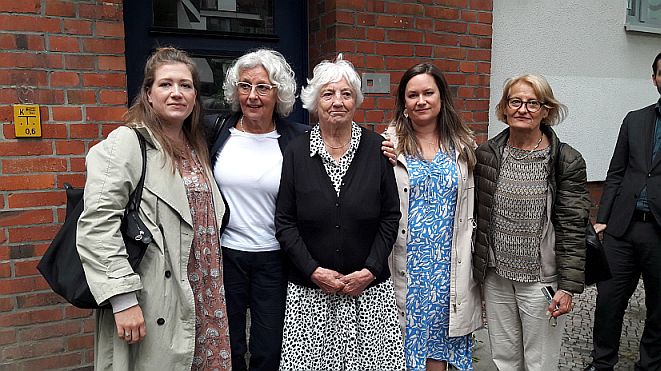 Die Angehörigen des Fritz Storch: Katja (Urenkelin), Jutta Jaeger (Enkelin), die Tochter des Fritz Storch, Lina (Urenkelin) und Susanne (Enkelin) (v.l.n.r.)