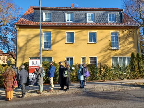 Bei eisiger Kälte, aber strahlendem Sonnenschein, wurde am 21. November 2025 die Erinnerungstafel „Letzte Adresse“ für das Geschwisterpaar Johanna und Karl-Heinz Kuhfuß an deren letzter Wohnadresse in der Carmenstraße 1 in der Baumblütenstadt Werder/Havel angebracht. Initiiert und organisiert wurde die feierliche Zeremonie vom Team MEMORIAL Deutschland, unter der Leitung von Dr. Anke Giesen und Mario Bandi, in Zusammenarbeit mit der Landesbeauftragten zur Aufarbeitung der kommunistischen Diktatur in Brandenburg, Dr. Maria Nooke. Etwa 40 Gäste, darunter die Zeitzeugen Werner Bork und Prof. Dr. Sigurd Blümcke, nahmen an der Veranstaltung teil.